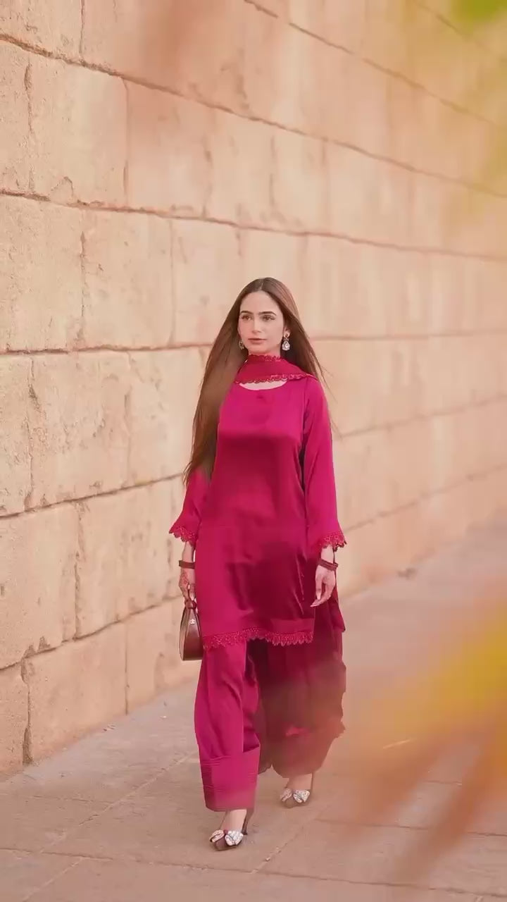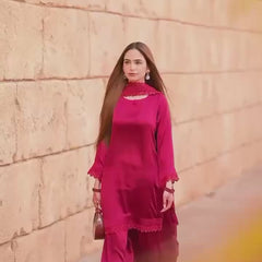 Maroon Embroidered Straight Suit Set