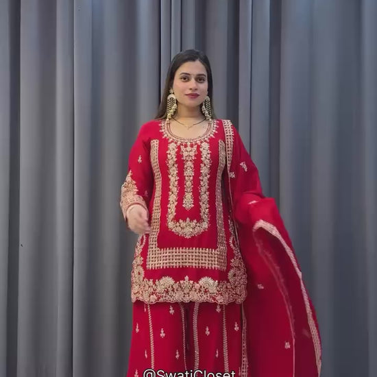 red sharara set amrodary